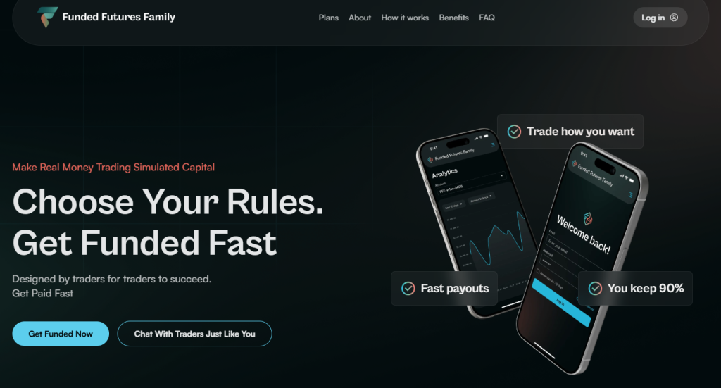 Funded Futures Family is a futures prop that pays a high split while enforcing a clear payout cadence. After funding, traders qualify for payout once they record seven “winning days” (≥$200) without hitting max loss; requests are approved and paid on Tuesdays, with “no activation fees” and a stated 90% keep rate.